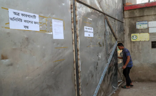 বিভিন্ন কারখানার ফটকে টাঙানো হয়েছে কারখানা বন্ধের নোটিশ। সকাল নয়টায় গাজীপুরে